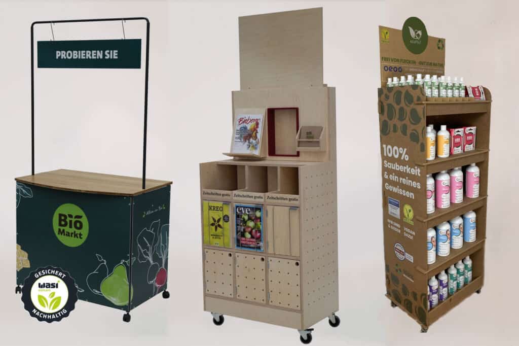 Nachhaltige Langzeitdisplays aus Holz oder Mehrweg-Displays sind in der ökologischen Lebensmittelwirtschaft gefragt. Geschäftsführer Johannes Wasikowski besuchte seine Kunden auch 2025 auf der Biofach.